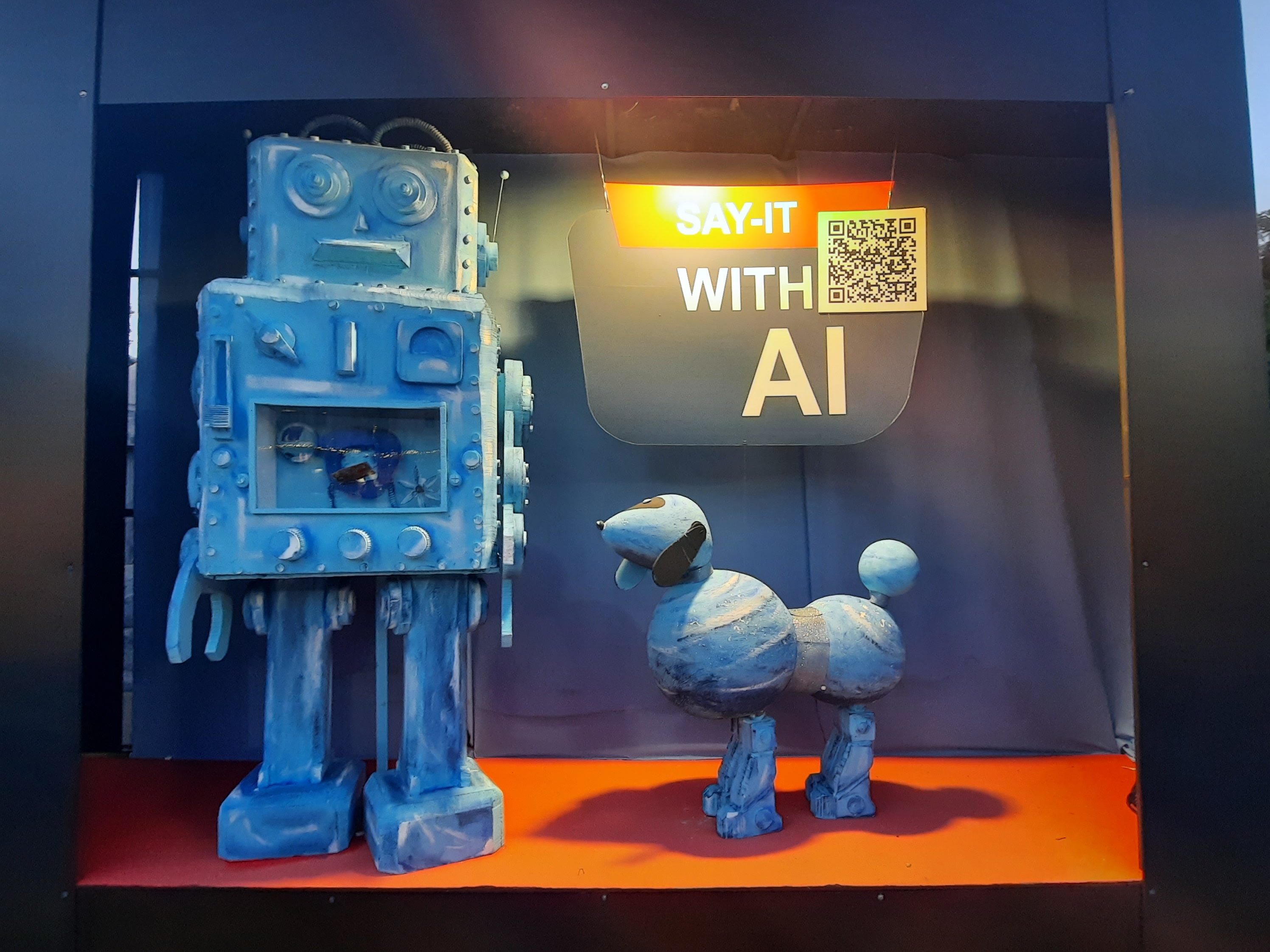 為了抑制《魚書》在創立之初就對某物愛恨交加的複雜心情,我把它放大。對於此物我不想多言,只是因為看到它也進入了聖誕集市,成為了展覽櫃的一部分,便多說幾句。雖然它是個非營利組織的活動展示,但像個隱喻。寫這篇文時,剛好看到法國媒體對於中國AI產業的幾份最新報導。在中國,AI已經在喪葬行業用來重生那些逝去的人,只要有幾幅照片,幾段錄像錄音就可以復活重現逝者,並與不能接受他離去的生者交流。此種技術被那位中國科技狂人老闆稱作「一種新的人文精神」。我只是在想,有了這技術,人類政教合一的制度簡直會如魚得水,因為傳統政教合一國家的神人之間需要溝通人傳話來制定政策,傳話人必須時刻展示自己的神奇功能和合法性。而神人之所以有鴻溝,是因為人會死的,宗教也必須對死亡問題做出解釋。可有了AI,連溝通人都不需要,AI完全可以成為神,並成為一種教。它可以否定人類死亡和失去的經驗,讓你的死這件事變得不存在,當然你的生這件事也可以不存在,而大家都會以為你存在。這比耶穌死而復活最終以愛戰勝死亡的基督教教義都來得動人,以後直接用AI代替愛多簡便,不用你受苦心碎背負自己的十字架。而到時候,政治和AI教分離,將會是人類歷史上最艱難最富有挑戰性的撕扯。那麼未來的聖誕集市上,那個耶穌誕生群像里的小耶穌,會不會被AI替代呢?或者最後聖誕節也沒了,直接來個AI誕。