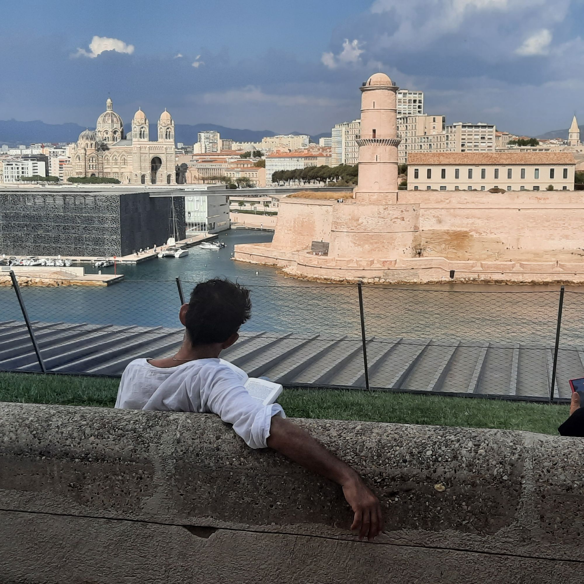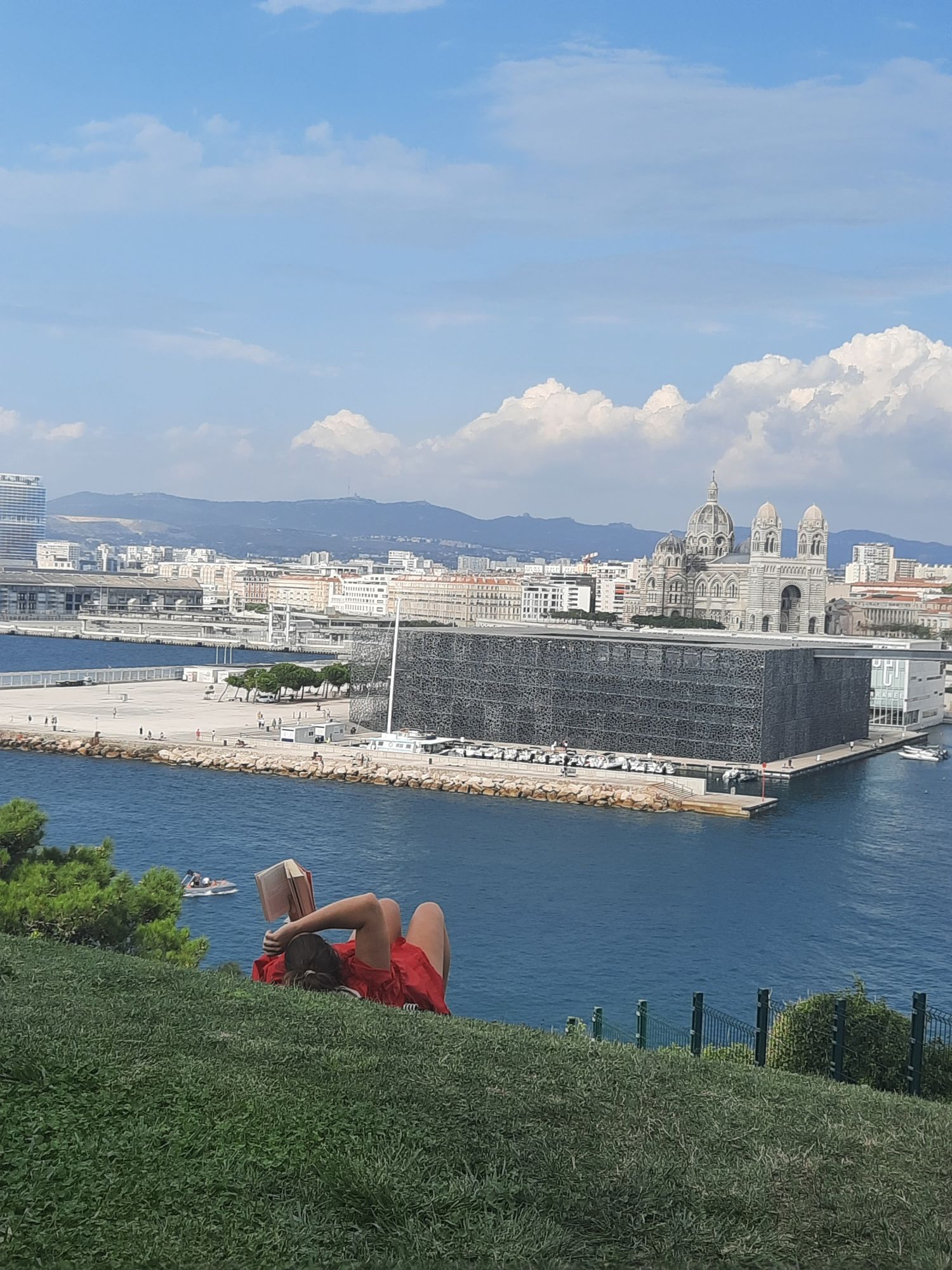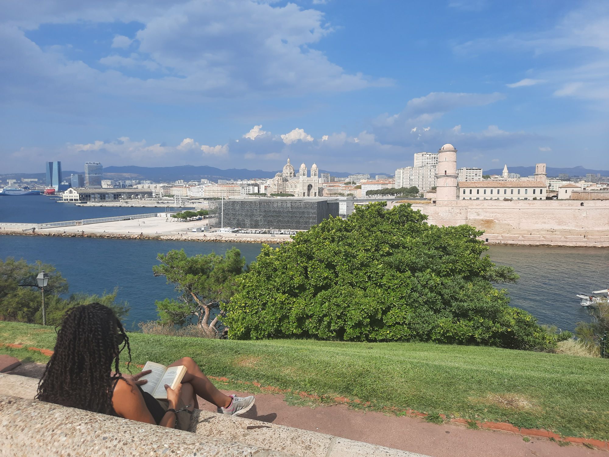 不僅在海邊礁石上,在馬賽旅遊景點,也看見不少人手捧書在讀,讀書的年輕人居多。