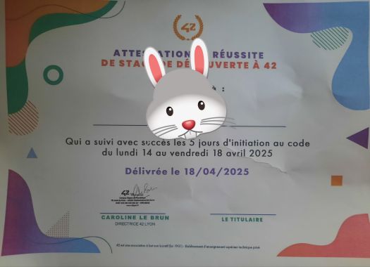 一張白底彩色的實習證書,證書的題頭一個大寫的數字:42。