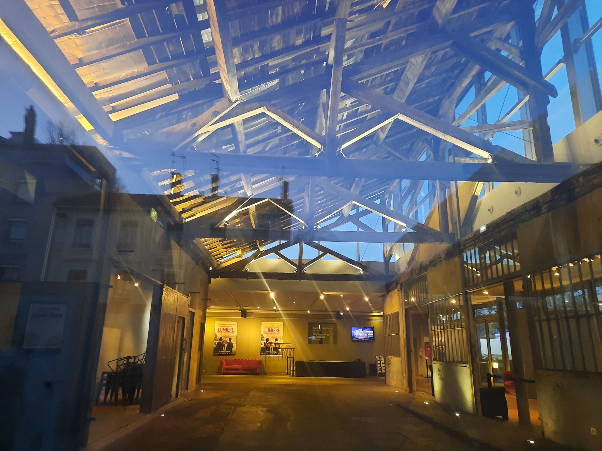 進門可以看到盧米埃爾中心保存的第一部電影裡工廠的木製結構屋頂